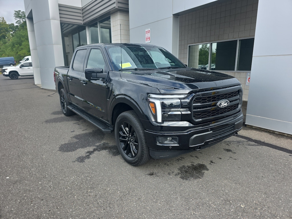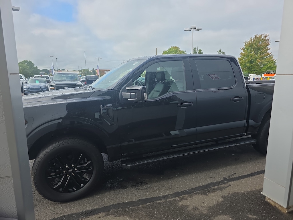 Certified. Bluetooth, apple car play, android auto, Tow Package, Remainder of Factory Warranty, Leather Seats, Heated Seats, Backup Camera, 2nd Row Heated Seats, 4 Pickup Box Tie-Down Plates, Ambient Lighting - Ice Blue Color Only, Bed Utility Package, Console Worksurface, Equipment Group 502A High, Heads-Up Display, Illuminated Driver & Passenger Visors, LED Box Lighting, Mobile Office Package, Navigation system: Connected Navigation, Partitioned Lockable Rear Storage, Power Tailgate, Power-Sliding Rear Window, Pro Access Tailgate, Radio: B&O Unleashed Sound System by Bang & Olufsen, Wheels: 20 Chrome-Like PVD, Wireless Charging. Clean CARFAX. Black Metallic 2025 Ford F-150 Lariat 4WD 10-Speed Automatic 5.0L V8