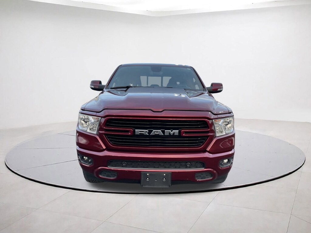 115V Auxiliary Power Outlet, 115V Auxiliary Rear Power Outlet, 2 USB Full Function/Charge Only Media Hub, 2nd Row In Floor Storage Bins, 3 Rear Seat Head Restraints, 4 Adjustable Cargo Tie-Down Hooks, 4 Way Front Headrests, 400W Inverter, Air Conditioning ATC w/Dual Zone Control, Auto-Dimming Rear-View Mirror, Bed Utility Group, Big Horn Badge, Big Horn IP Badge, Big Horn Level 2 Equipment Group, Black Interior Accents, Black Premium Power Mirrors, Body Color Door Handles, Body Color Front Bumper, Body Color Premium Power Mirrors, Body Color Rear Bumper w/Step Pads, Bucket Seats, Class IV Receiver Hitch, Dampened Tailgate, Deluxe Cloth Bucket Seats, Deployable Bed Step, Dome Dual LED Reading Lamp, Dual-Pane Panoramic Sunroof, Foam Bottle Insert (Door Trim Panel), Front Seat Back Map Pockets, Full Length Floor Console, Glove Box Lamp, GPS Navigation, Grille Surround 1 Body Color Texture 2 Black, Heated Front Seats, Heated Steering Wheel, Manual Adjust 4-Way Front Passenger Seat, Overhead LED Lamps, ParkSense Front/Rear Park Assist w/Stop, Pick-Up Box Lighting, Power 4-Way Driver Lumbar Adjust, Power 8-Way Driver Seat, Power Adjustable Pedals, Premium Overhead Console, Quick Order Package 25Z Big Horn, Radio: Uconnect 4 w/8.4" Display, Rear 60/40 Folding Seat, Rear Dome w/On/Off Switch Lamp, Rear Power Sliding Window, Rear Window Defroster, Security Alarm, SiriusXM Satellite Radio, Sport Appearance Package, Sport Decal, Spray In Bedliner, Sun Visors w/Illuminated Vanity Mirrors, Universal Garage Door Opener. Delmonico Red Pearlcoat 2020 Ram 1500 Big Horn/Lone Star 4WD 8-Speed Automatic HEMI 5.7L V8 Multi Displacement VVT